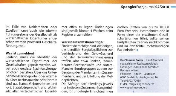 Aktuelle Publikation im Spengler Fachjournal 02/2018