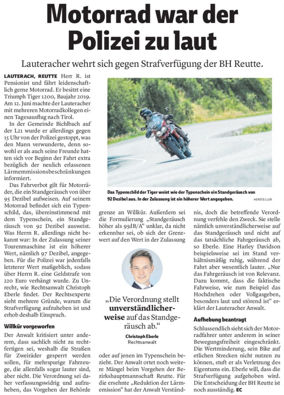 RA Dr. Eberle hat sich die Verordnung näher angesehen und hegt Zweifel an der Rechtmäßigkeit. Warum gilt das nur für Zweiräder, nicht aber f...