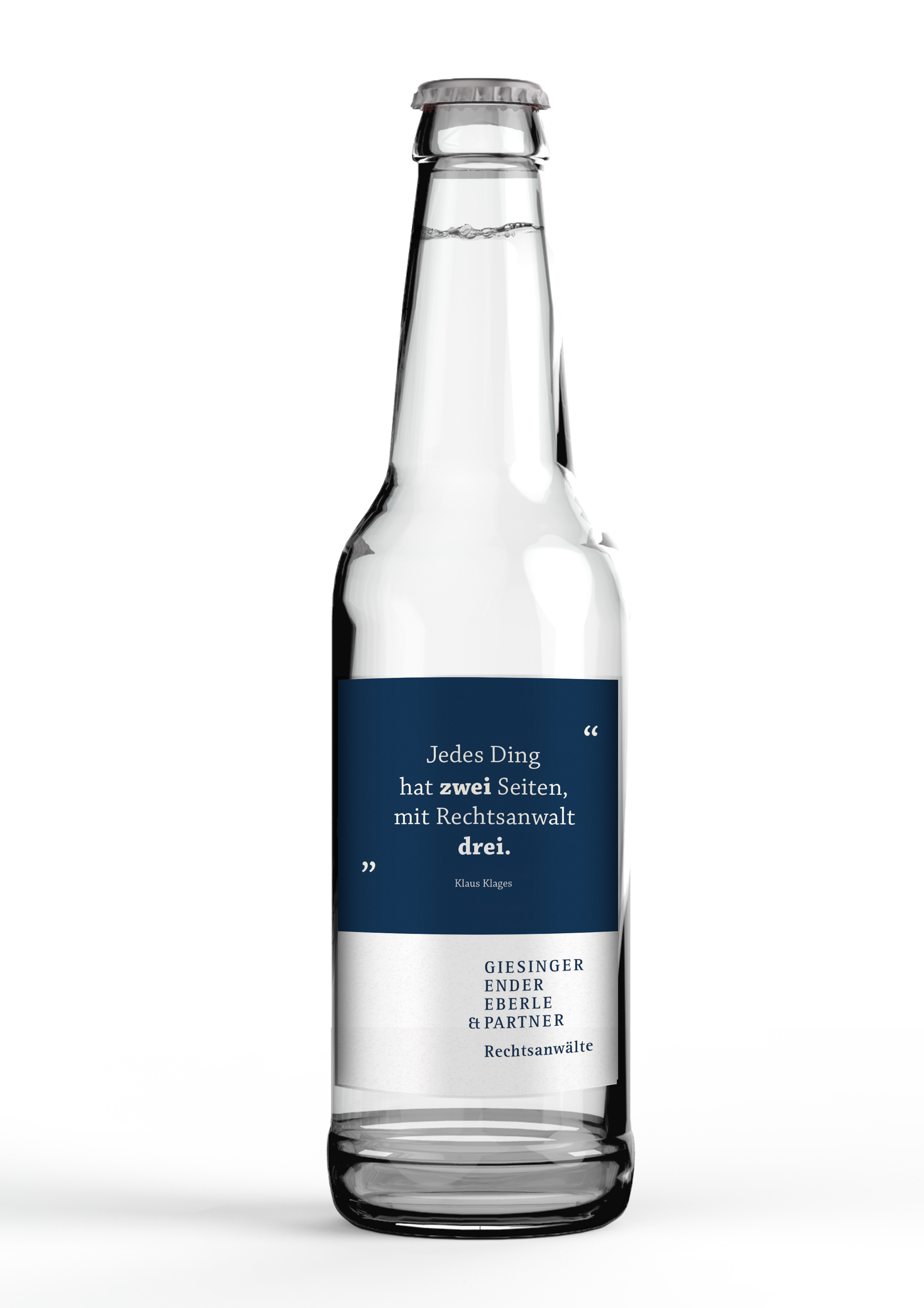 beim Limomacher haben wir allerlei Erfrischungsgetränke mit Zitaten von John F. Kennedy und anderen Persönlichkeiten besorgt, personalisiert mit unserem Kanzleilogo, damit auch unsere Mandanten einen kühlen Kopf bewahren können, egal worum es geht und wi...